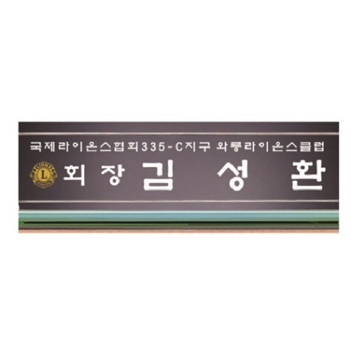 °¡·Î 60cm, ¼¼·Î 7cm, ³ôÀÌ 13cm ±Û¾¾°¡ µé¾î°£ ºÎºÐÀº ÈÀÌÆ®ÀÌ¸ç ¾çÃø¸é¿¡ ¾Æ·¡ºÎºÐÀº °ËÁ¤»ö ÀºÎºÐÀº ±×¸°, ±× ¾Æ·¡ÀÇ ¹ÞħºÎºÐÀº Ä®¶ó Å©¸®½ºÅ»·Î µÈ ¸íÆÐÀÔ´Ï´Ù